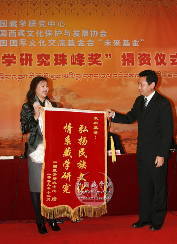 中國藏學(xué)研究中心向中國國際文化交流基金會“未來基金”贈送錦旗