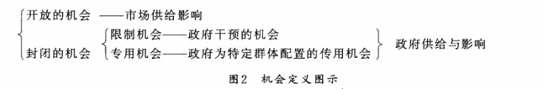 這里的分析主要采納機(jī)會(huì)的第一種定義,為了更準(zhǔn)確的描述機(jī)會(huì)的重要性,對(duì)其進(jìn)行詳細(xì)定義如下:機(jī)會(huì)指的是能改善人們自身境遇,提高效用水平的外部條件。