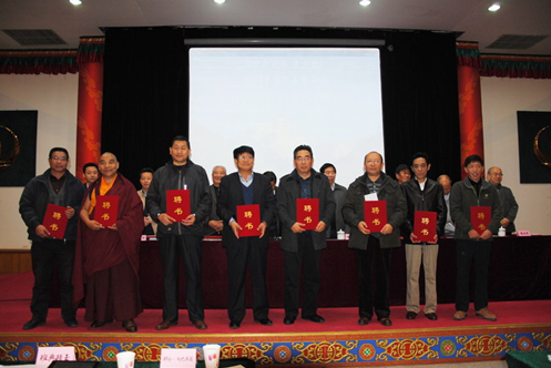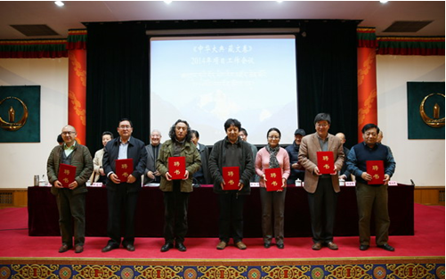 《中華大典?藏文卷》辦公室向與會代表報告了編纂進(jìn)展情況及2015年工作計劃,參會人員在分組討論中,對工作報告進(jìn)行了審議,對下一步工作提出了意見和建議。甘南民族師范學(xué)院《中華大典?藏文卷》工作站作為第一個項目工作站,介紹了工作開展情況。會議向《中華大典?藏文卷》編纂委員會委員、專家委員會委員頒發(fā)了聘書。專家委員會對2014年上報項目進(jìn)行了審議,編纂委員會宣布了立項項目的決議。確定25個項目作為第二批項目。據(jù)統(tǒng)計,第二批項目共有近700部(卷)藏文古籍。