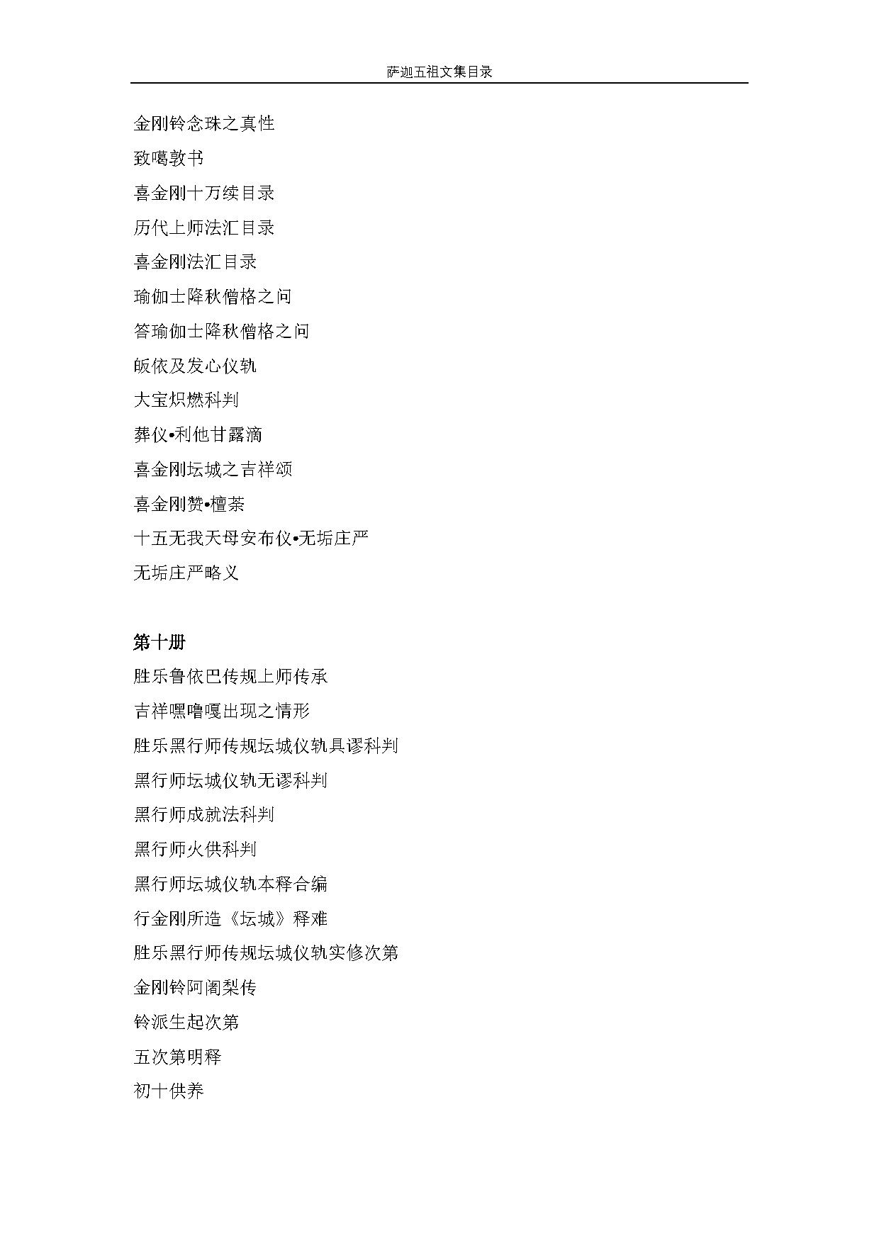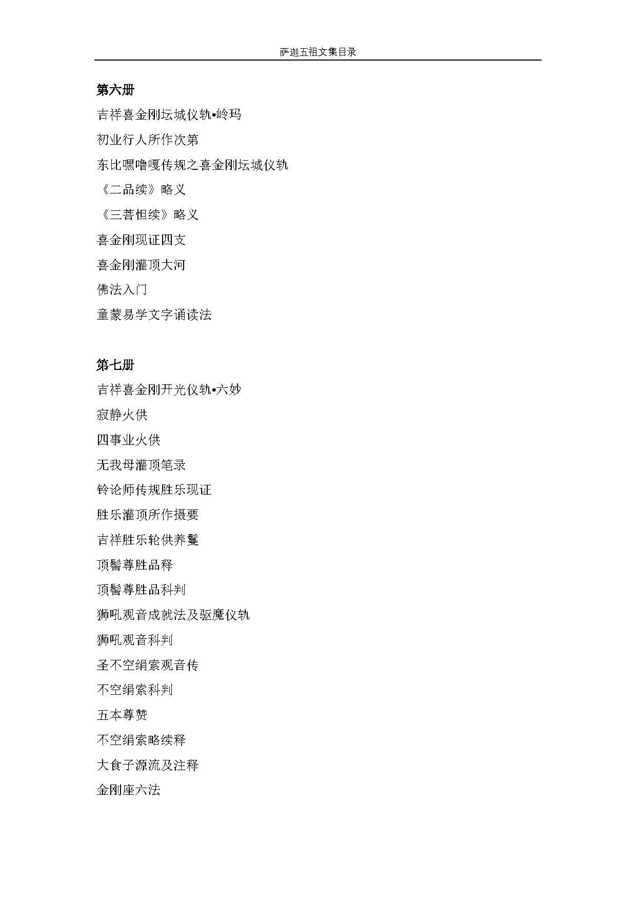 薩迦五祖文件集目錄(6-10冊)