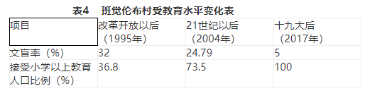 我們再來看一下班覺倫布村村民受教育水平的變化情況(表4)。改革開放以后,一方面是全村接受小學(xué)以上教育的人口比例不斷提高,學(xué)生入學(xué)率在2018年達到100%;另一方面,全村文盲率不斷降低,從32%下降到5%,全民脫盲指日可期。進入21世紀(jì)后,班覺倫布村的整體教育水平不斷增長,初中以上文化程度的人口數(shù)量大幅度增加,還出現(xiàn)了大學(xué)本科生。截至2018年,村里基本每家每戶都培養(yǎng)出了大學(xué)生。伴隨西藏自治區(qū)從有關(guān)政府部門到家庭要承擔(dān)學(xué)齡兒童輟學(xué)被問責(zé),以及2012年秋季開始執(zhí)行學(xué)前至高中階段15年免費教育的政策與對農(nóng)牧民子女“三包”和學(xué)前教育財政補助的政策,班覺倫布村對孩子的教育空前重視,近年來幾乎所有孩子都能從幼兒園一直上到高中或大學(xué)畢業(yè)。顯示出60年來西藏農(nóng)村教育的發(fā)展取得了可喜的成就。