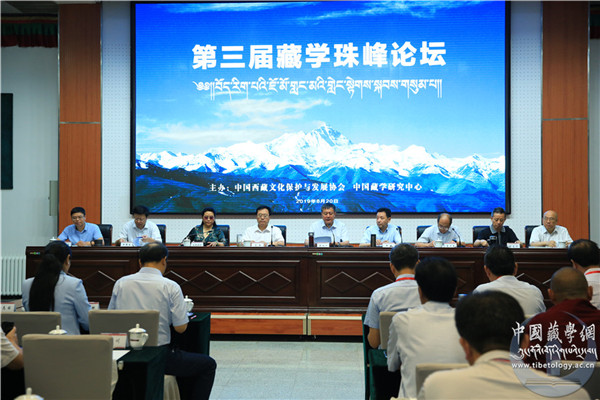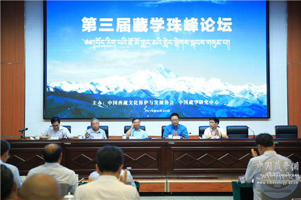 2019年8月20日上午,第三屆藏學珠峰論壇在北京中國藏學研究中心開幕。來自全國40多家藏學研究機構的專家學者、西藏脫貧一線的基層干部、西南民族大學與藏研中心共建博士點的7名在讀博士等共100多位專家學者出席本次論壇。