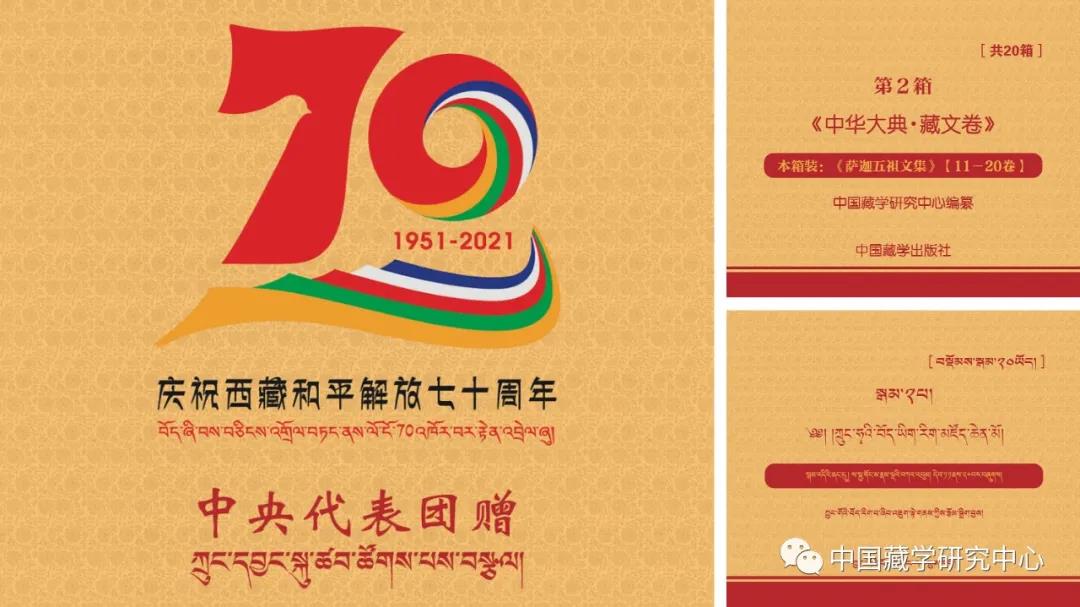 2021年8月,為慶祝西藏和平解放70周年,《中華大典·藏文卷》作為中央代表團禮品向西藏重點寺廟、中國佛教協(xié)會西藏分會及各地市佛教協(xié)會、西藏佛學院贈送。