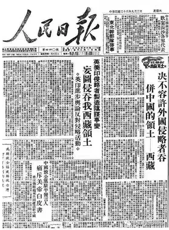 (圖為《人民日?qǐng)?bào)》發(fā)表新華社社論《絕不容許外國侵略者吞并中國的領(lǐng)土——西藏》)
