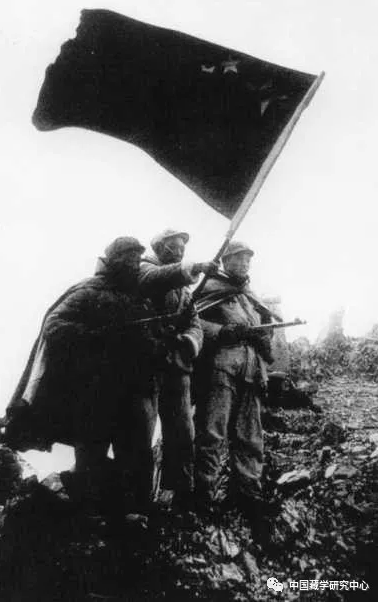 (圖為先遣連第一次將五星紅旗升起在阿里高原)