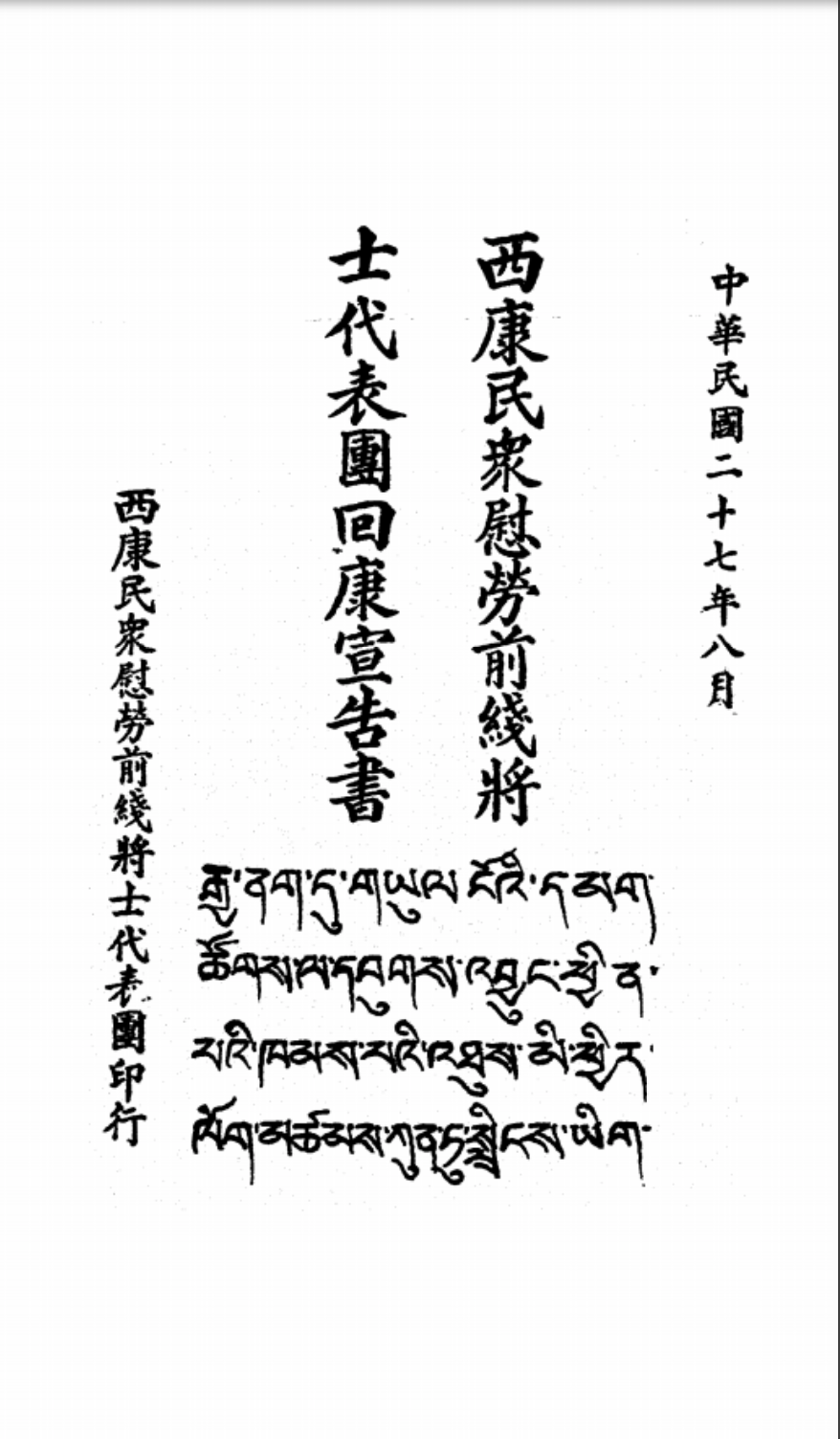 西康民眾慰勞前線將士代表團(tuán)回康書