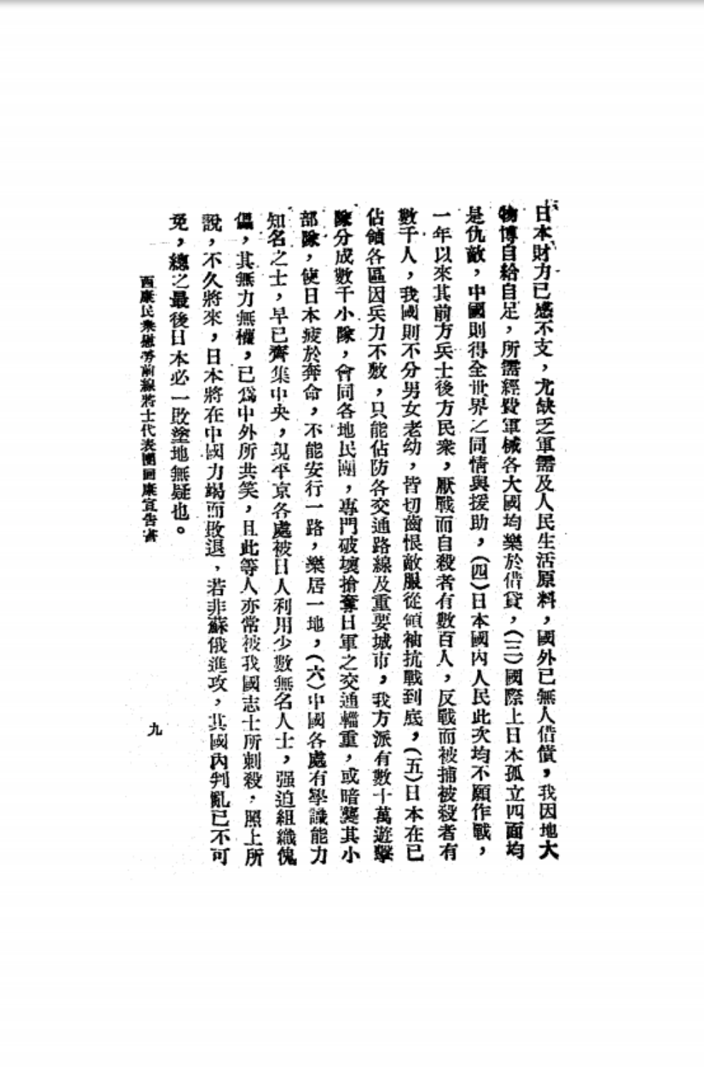 西康民眾慰勞前線將士代表團(tuán)回康書(shū)-漢文9