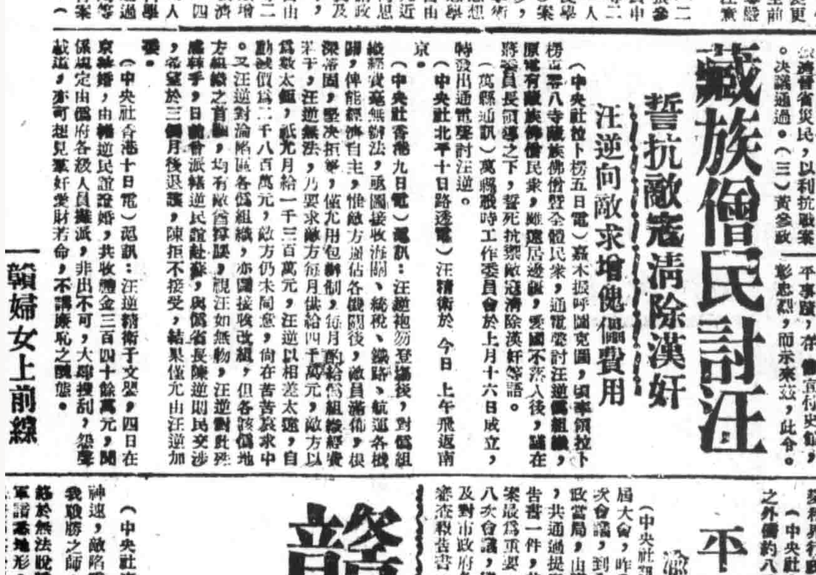 藏族僧民討汪,誓抗敵寇清除漢汗(《新華日報(bào)》1940年4月11日)