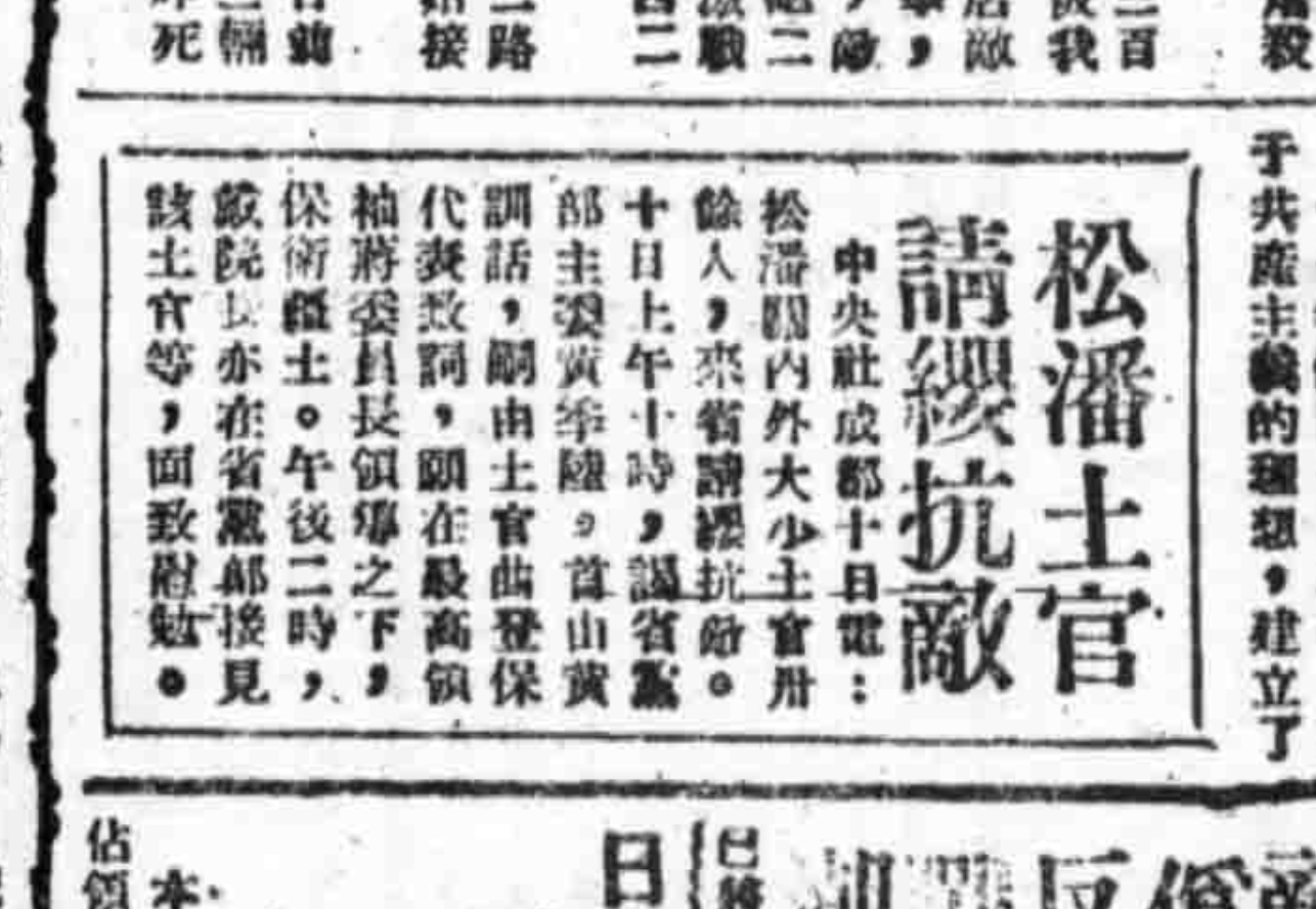 松潘土官請纓抗敵(《新華日報(bào)》1939年4月11日)
