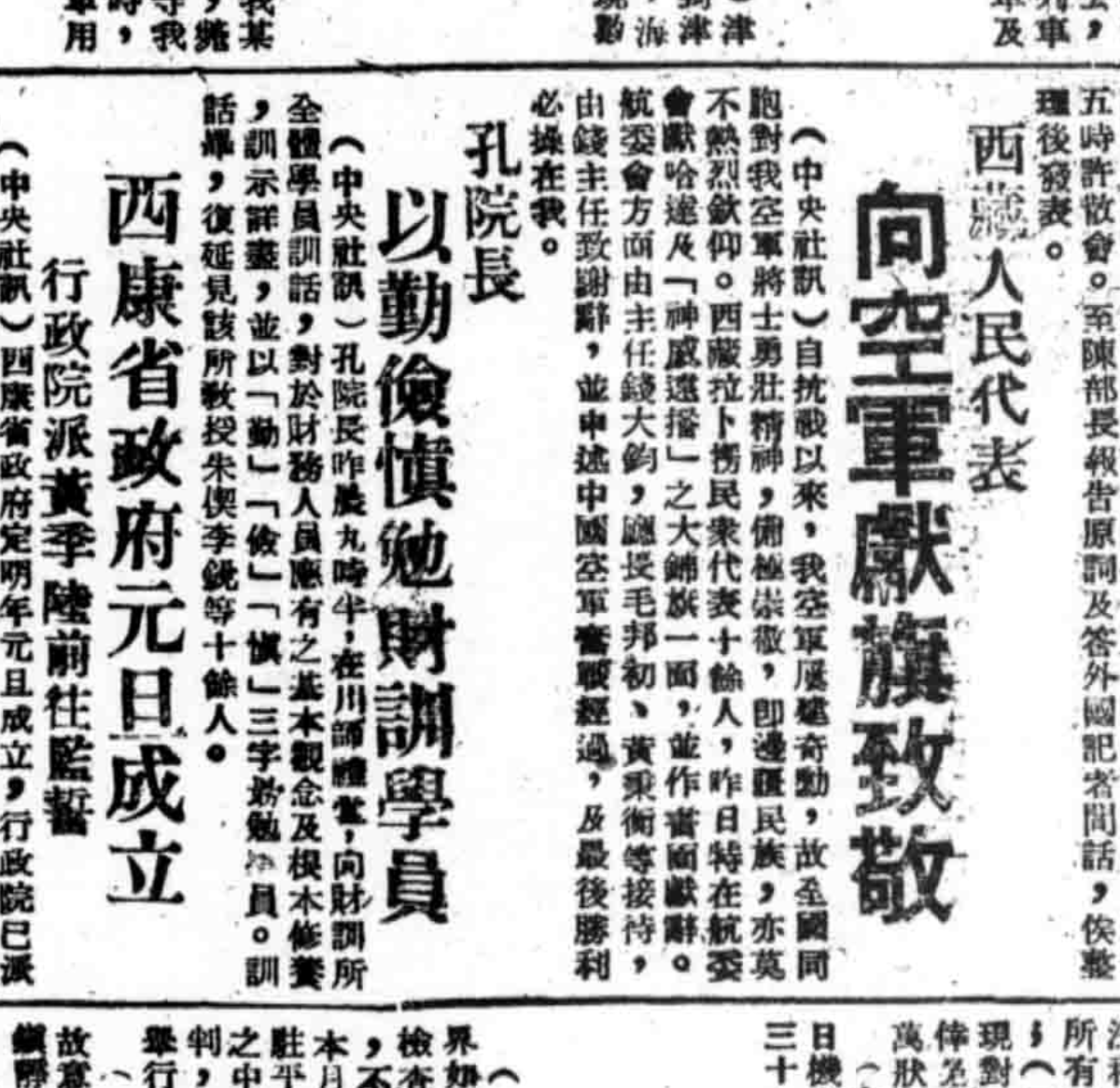 西藏人民代表向空軍獻(xiàn)旗致敬(《新華日?qǐng)?bào)》1938年12月22日)