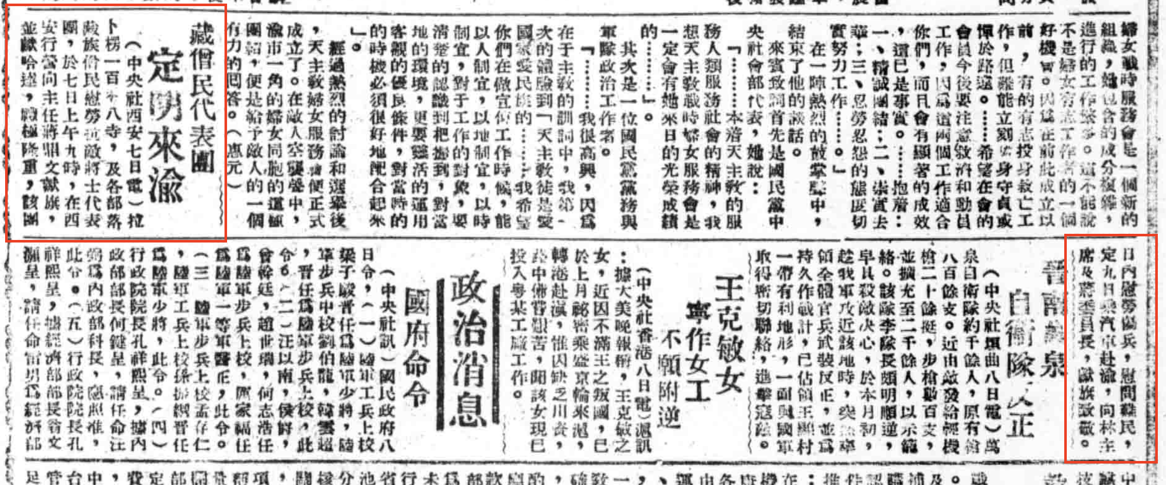 藏族僧民代表團(tuán)定明來渝(《新華日報》1938年11月9日)