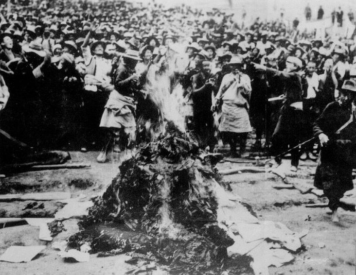 1959年8月10日,甘丹寺所屬谿卡的農(nóng)奴們將寺廟所有的烏拉差役、高利貸、賣身等文書契據(jù),投入熊熊烈火化為灰燼。從此,廢除了寺廟一切封建農(nóng)奴制特權(quán)。(陳宗烈 攝)