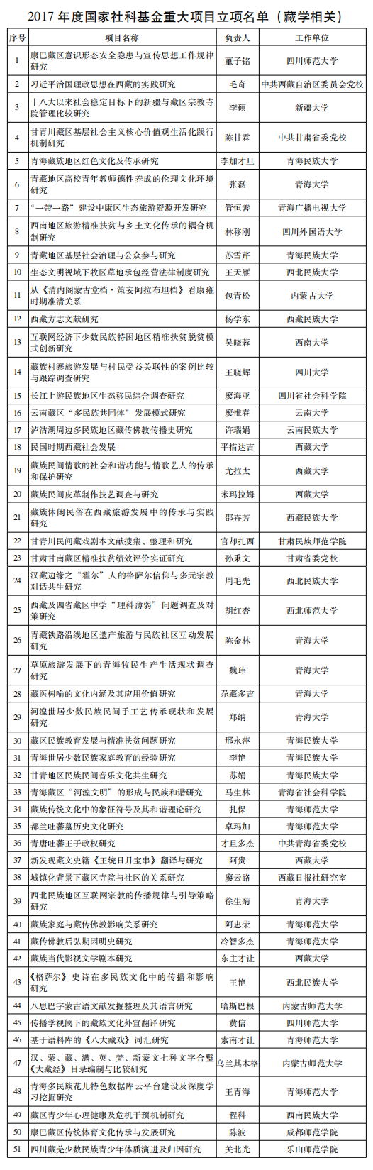 經(jīng)專家評審、社會公示并報全國哲學(xué)社會科學(xué)規(guī)劃領(lǐng)導(dǎo)小組批準,7月4日由全國哲學(xué)社會科學(xué)規(guī)劃辦公室將2017年度國家社科基金西部項目評審立項結(jié)果予以公布。2017年西部項目共立項492項,每項資助強度為20萬元。