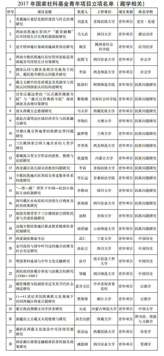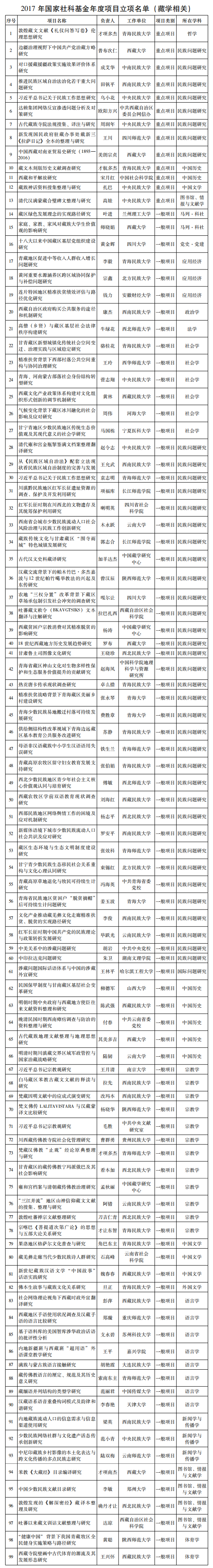 以下為2017年國家社科基金年度項(xiàng)目立項(xiàng)名單(藏學(xué)相關(guān))和2017年國家社科基金青年項(xiàng)目立項(xiàng)名單(藏學(xué)相關(guān))。