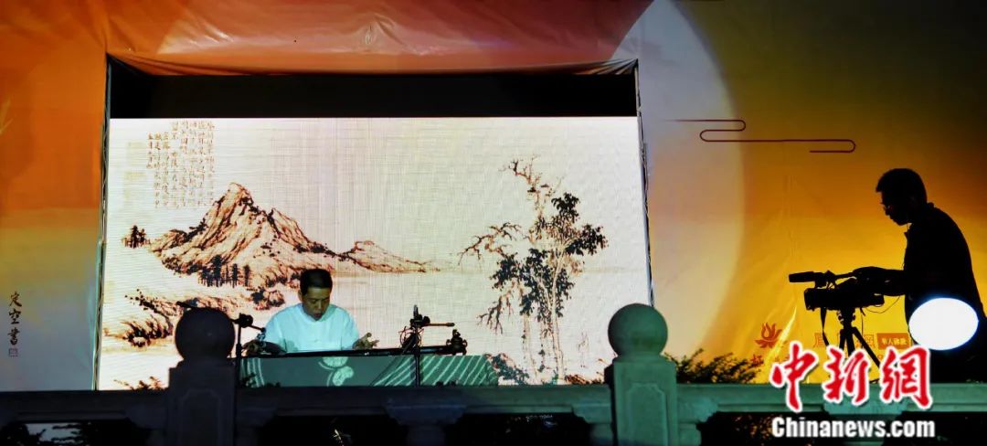 (2013年9月,300余名佛教學(xué)者和信眾相聚福建古田縣極樂寺,緬懷中國近現(xiàn)代著名愛國高僧、杰出佛教領(lǐng)袖圓瑛法師。圖為古琴演奏《憶故人》。中新社記者呂巧琴攝)
