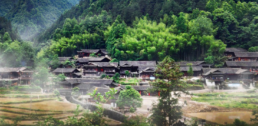 ▲吊腳樓村寨。