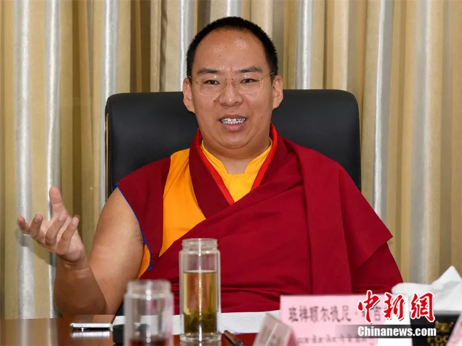 6月10日,班禪與西藏佛學院經(jīng)師座談中發(fā)言交流。中新社發(fā)李林攝