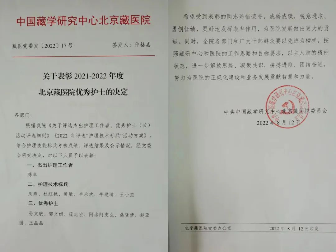 角加宣讀了《關(guān)于表彰2021-2022年度優(yōu)秀醫(yī)師的決定》和《關(guān)于表彰2021-2022年度優(yōu)秀護(hù)士的決定》。