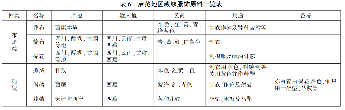服飾作為人體裝飾的物品,既有驅(qū)寒保暖、裝飾美觀的功能,也具有標(biāo)識(shí)性和非標(biāo)識(shí)性的族群文化特征。打箭爐商貨中服飾占有較大比重,為了滿足漢藏民眾的穿著習(xí)慣、審美等需求,其原料和工匠制作技藝中也呈現(xiàn)出中華民族共同性的元素。