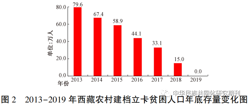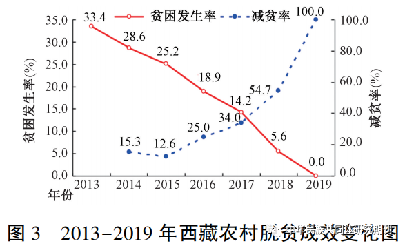 另一方面,中華民族共同體的建設(shè)重要任務(wù)之一便是脫貧攻堅。西藏脫貧攻堅工作取得了全面勝利(如圖2、圖3所示)使貧困地區(qū)的人民全面脫貧,解決了其生產(chǎn)生活發(fā)展難題,滿足他們對于幸福生活的追求和向往,這不單單是新時期能夠全面建成小康社會的目標,也是鑄牢中華民族共同體的重要基礎(chǔ)之一。