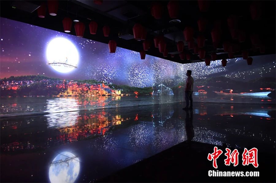 “夢(mèng)游巴渝十二景”光影互動(dòng)藝術(shù)空間吸引游客感受巴渝的優(yōu)美景致。周毅攝