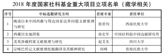 2018年度國家社會科學(xué)基金重大項(xiàng)目立項(xiàng)342項(xiàng),其中藏學(xué)相關(guān)類立項(xiàng)4項(xiàng)。