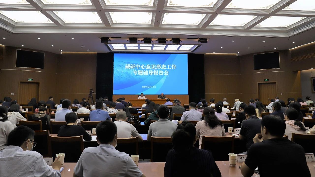 為持續(xù)深入推進(jìn)學(xué)習(xí)貫徹習(xí)近平新時(shí)代中國(guó)特色社會(huì)主義思想主題教育,不斷提升黨員干部做好意識(shí)形態(tài)工作的思想自覺和能力水平,牢牢把握藏學(xué)研究正確政治方向,6月15日上午,藏研中心意識(shí)形態(tài)工作領(lǐng)導(dǎo)小組舉辦本年度第二期意識(shí)形態(tài)工作專題輔導(dǎo)報(bào)告會(huì),邀請(qǐng)中央黨史和文獻(xiàn)研究院第一研究部研究員郭如才作輔導(dǎo)報(bào)告。藏研中心黨組書記陳宗榮出席,副總干事廉湘民主持,全體干部職工參加。