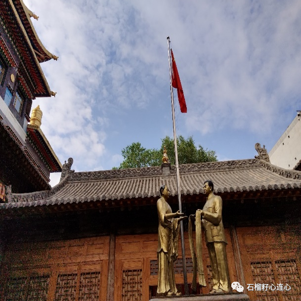 如今,修繕一新的明代與清代殿堂之間的空地上,是習(xí)仲勛同志與十世班禪的站立銅像,五星紅旗在寺院上方高高飄揚。明代大殿現(xiàn)已成為“青海省民族團結(jié)進步教育基地”,殿內(nèi)塑有習(xí)仲勛同志與十世班禪在此會談的銅像,上方懸掛著兩人會談?wù)掌?/p>