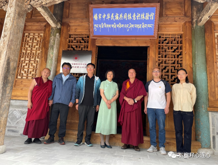 噶爾哇?阿旺桑波活佛、徐黎麗教授一起為研習(xí)基地揭牌并與與會代表合影留念。