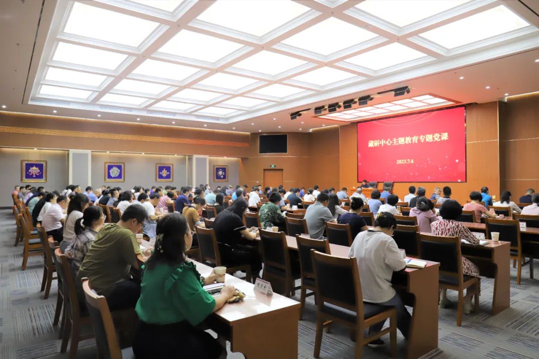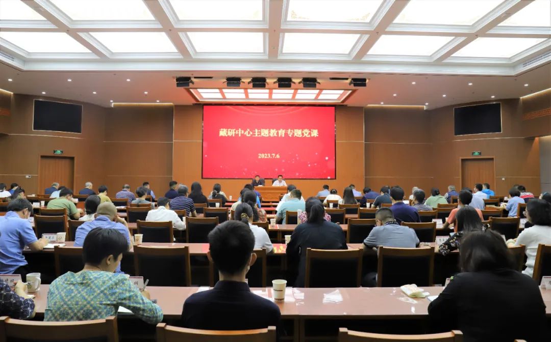 7月6日,藏研中心黨組書記、學(xué)習(xí)貫徹習(xí)近平新時(shí)代中國特色社會(huì)主義思想主題教育領(lǐng)導(dǎo)小組組長陳宗榮,以“學(xué)深悟透習(xí)近平總書記關(guān)于哲學(xué)社會(huì)科學(xué)工作的重要論述,加快推進(jìn)中國特色藏學(xué)‘三大體系’建設(shè)”為題講專題黨課。中央統(tǒng)戰(zhàn)部主題教育第五指導(dǎo)組有關(guān)同志到會(huì)指導(dǎo)。藏研中心總干事、黨組副書記鄭堆主持會(huì)議,中心各部門黨員干部、北京藏醫(yī)院黨委班子及各支部負(fù)責(zé)同志、中心離退休黨支部支委成員共120余人參會(huì)。