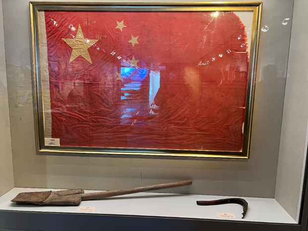 旺久書記和一面國旗的故事:1937年,旺久出生在巴宜區(qū)米瑞鄉(xiāng)的一個農(nóng)奴家庭,是當(dāng)時處于農(nóng)奴制度的西藏社會地位最為低下的“朗生”。1951年,中國共產(chǎn)黨的光輝照進(jìn)雪域高原,西藏和平解放,旺久和他的家人也翻身當(dāng)家做了主人。1958年,21歲的旺久被西藏自治區(qū)籌備委員會推薦到北京參加為期兩年的少數(shù)民族學(xué)習(xí)班。1960年,旺久在北京受到毛澤東等黨和國家領(lǐng)導(dǎo)人的親切接見,并合影留念。回來后為了慶祝新生活,旺久就帶著黨員們縫制了這面國旗。這些年來,旺久播撒的愛黨、敬黨的種子已在立定村的土地上生根、開花、結(jié)果。旺久書記的一生是老一輩共產(chǎn)黨員奮斗不息的真實縮影,也是西藏翻身農(nóng)奴在中國共產(chǎn)黨的領(lǐng)導(dǎo)下開啟美好生活的真實寫照。