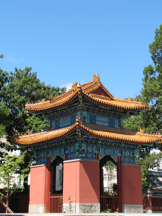 北海北岸曾經(jīng)有一片龐大的藏傳佛教寺廟建筑群,由西北角向東依次是:小西天(又稱“極樂世界”)、萬佛樓、闡福寺、大西天經(jīng)廠(又稱“大圓鏡智寶殿”)、西天梵境(又稱“大西天”)。5座建筑中,今天僅有最西邊的小西天和最東邊的大西天還較為完整。萬佛樓在動亂年代被拆除,只留下一座《萬佛樓瞻禮》詩碑。