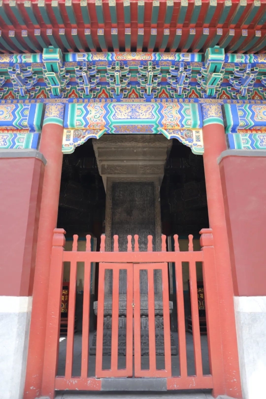 大西天的北部在北海公園開放時被隔離出來,由文物研究部門使用。這個院子里保存有一座高大的琉璃閣,還有一座七佛塔碑亭,《七佛塔碑》就在這座八角形塔上。這座塔由8塊石板組成,鑲嵌在木框中,基座是石頭的,塔外加蓋了一個很大的亭子。8塊石板組成塔身,其中7塊板上雕刻了7幅佛像,第八塊上雕刻碑文,豎寫,由右起依次是漢文、藏文、蒙古文和滿文。在釋迦牟尼佛像的頂端,雕有4塊文字說明,右起并排為漢文、滿文、蒙古文和藏文。