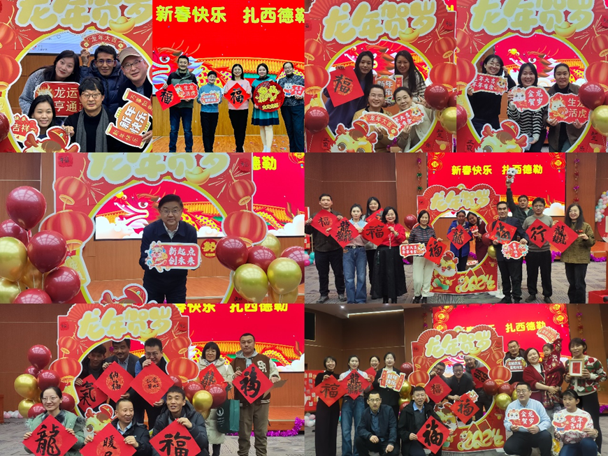 活動(dòng)現(xiàn)場(chǎng)分為“金龍送福”“龍年大悅”“分享喜悅”“生龍活虎”四個(gè)環(huán)節(jié)。大家聚集在龍年賀歲立牌周圍,紛紛表達(dá)對(duì)藏研中心未來龍行龘龘、前途朤朤的美好祝福。