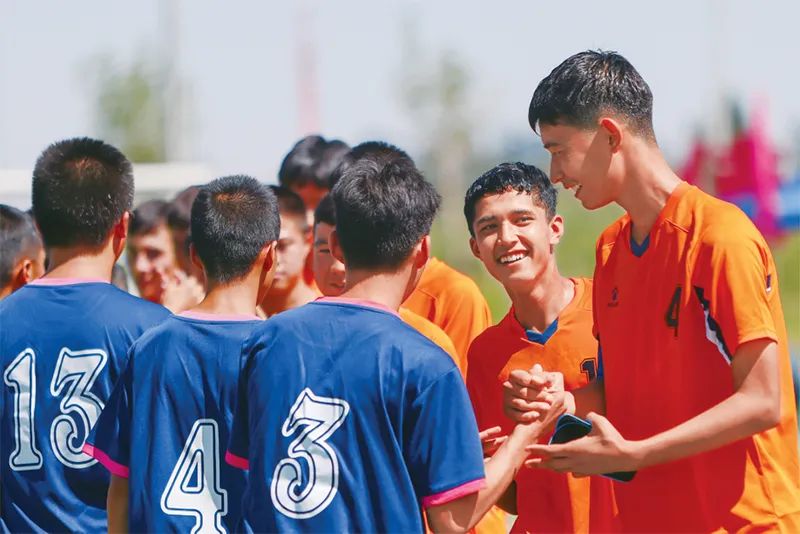 2023年8月30日,2023年黔新“石榴籽”杯青少年足球友誼賽在新疆喀什落下帷幕。友誼賽為期兩天,有來自貴州省黔西南布依族苗族自治州及新疆維吾爾自治區(qū)喀什地區(qū)、克孜勒蘇柯爾克孜自治州的10支球隊200余名青少年參賽。活動期間,各族青少年球員在球場上切磋球技、在交流中建立友誼。圖為8月29日,黔西南U15男隊(左)和喀什U15男隊(右)參賽選手比賽結(jié)束后互相擊掌致意。新華社記者郝昭/攝