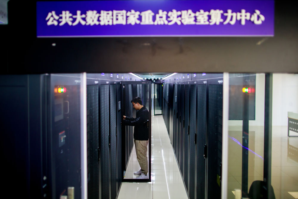 2023年5月23日,工作人員在貴州大學(xué)省部共建公共大數(shù)據(jù)國家重點實驗室算力中心機房檢查設(shè)備。新華社記者劉續(xù)攝
