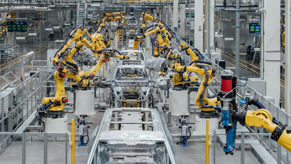 這是在重慶市兩江新區(qū)拍攝的賽力斯汽車超級工廠焊裝車間生產(chǎn)線(2024年2月26日攝,無人機照片)。新華社發(fā)(高彰攝)