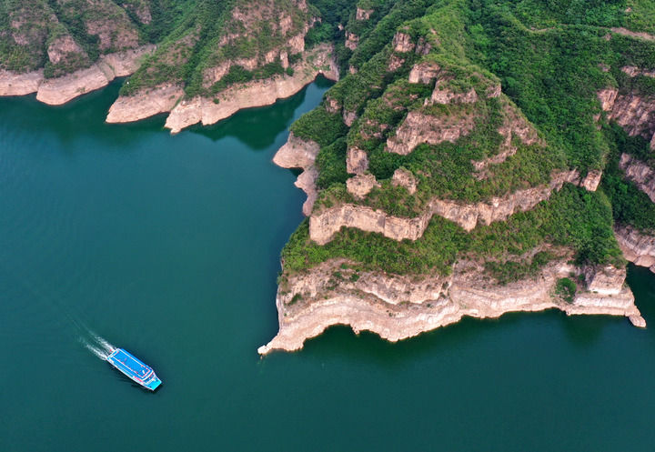 在河南省濟(jì)源市拍攝的黃河三峽景色(2024年5月28日攝,無人機(jī)照片)。新華社記者李安攝