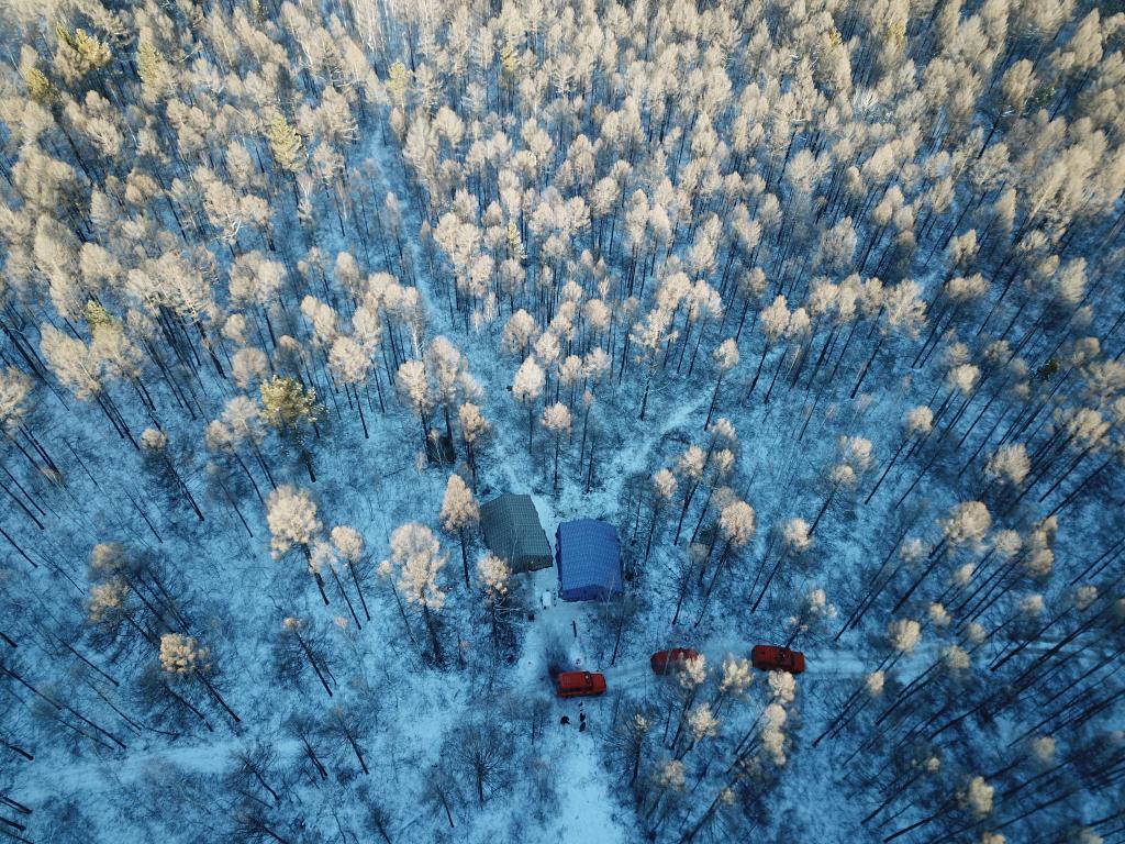 在黑龍江省漠河市北極鎮(zhèn)拍攝的北極村周邊一處漠河林場作業(yè)點(diǎn)(2023年12月24日攝,無人機(jī)照片)。新華社記者石楓攝
