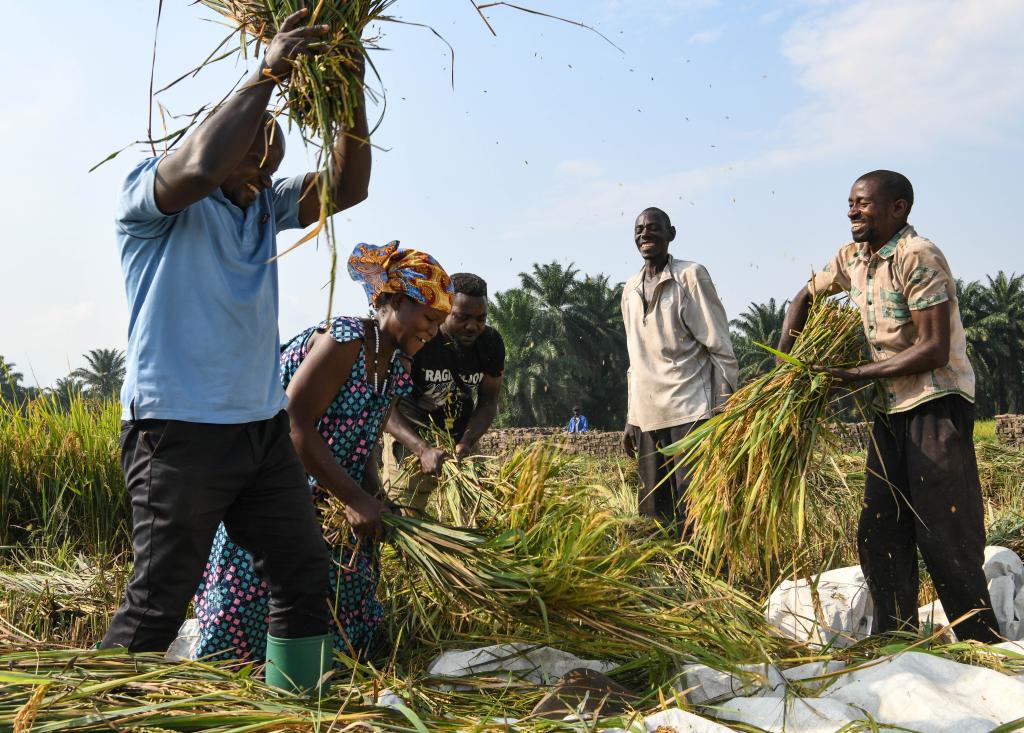 2023年6月20日,在布隆迪布班扎省基航加縣,農(nóng)民在田間給雜交水稻脫粒。多年來,中國派出農(nóng)業(yè)專家深入布隆迪各地,對當?shù)氐巨r(nóng)提供技術(shù)指導(dǎo),為糧食增產(chǎn)增收做出重要貢獻。新華社記者韓旭攝