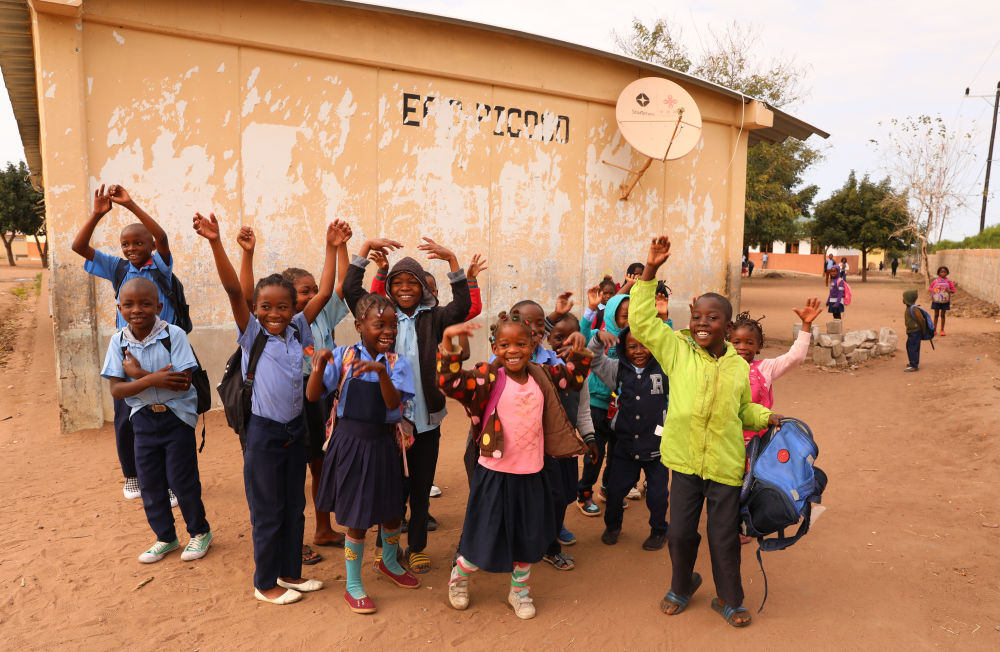 2023年7月25日,莫桑比克馬普托省皮科科村學(xué)校的孩子們站在裝有中國援助的衛(wèi)星電視接收天線的房屋前?!叭f村通”項(xiàng)目旨在為非洲國家的1萬個(gè)村莊接入衛(wèi)星數(shù)字電視信號,項(xiàng)目2018年在莫桑比克啟動(dòng),為該國1000個(gè)村落、2萬戶家庭和3000個(gè)公共場所安裝衛(wèi)星電視設(shè)備,提供電視信號和節(jié)目,覆蓋農(nóng)村人口達(dá)250萬。新華社記者董江輝攝