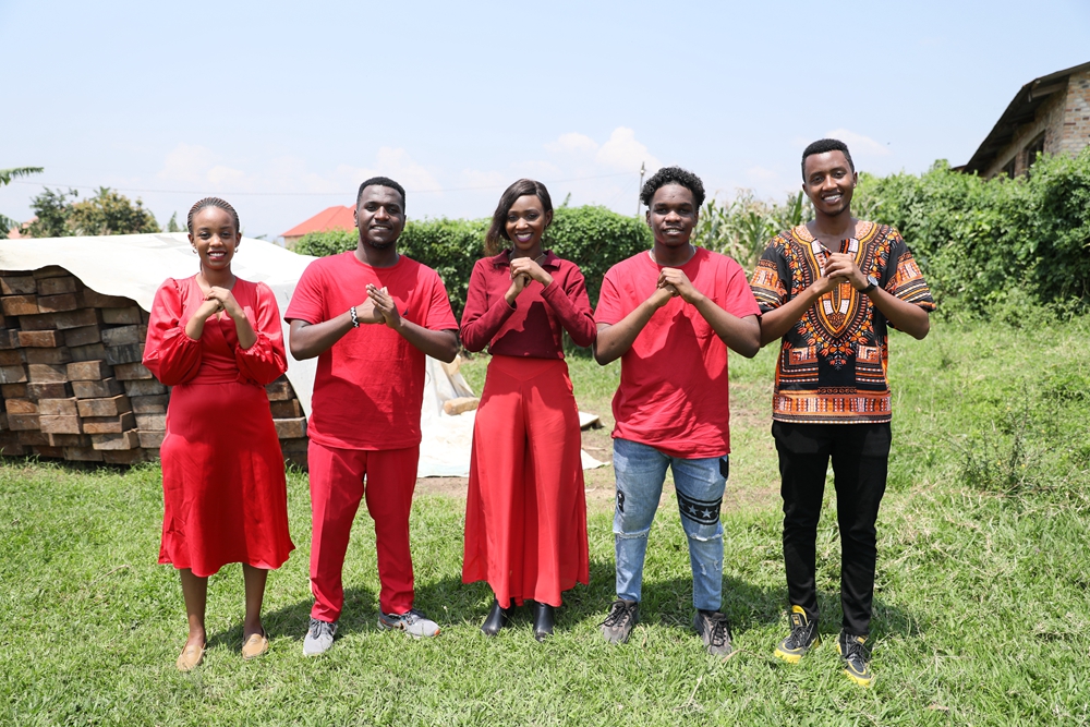 2024年2月7日,在盧旺達(dá)南方省卡莫尼地區(qū),盧旺達(dá)青年團(tuán)隊(duì)成員向鏡頭前觀眾送上新春祝福。新華社發(fā)(黃萬晴攝)