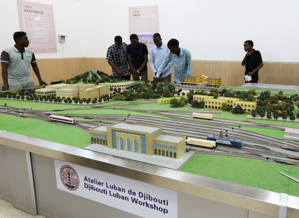 2022年9月19日,在位于吉布提首都吉布提市的吉布提工商學(xué)校,學(xué)生在魯班工坊鐵道運(yùn)營沙盤教學(xué)區(qū)學(xué)習(xí)。新華社記者董江輝攝