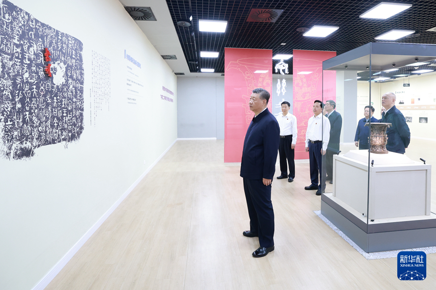 9月10日,中共中央總書(shū)記、國(guó)家主席、中央軍委主席習(xí)近平在前往甘肅考察途中,來(lái)到陜西省寶雞市參觀寶雞青銅器博物院。新華社記者鞠鵬攝