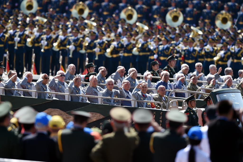 2015年9月3日,中國人民抗日戰(zhàn)爭暨世界反法西斯戰(zhàn)爭勝利70周年紀念大會在北京隆重舉行。這是抗戰(zhàn)老兵乘車方隊通過天安門廣場。新華社記者王定昶攝