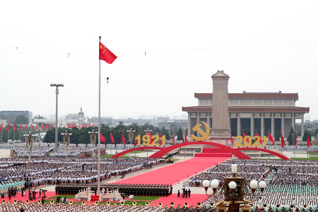 2021年7月1日上午,慶祝中國共產(chǎn)黨成立100周年大會在北京天安門廣場隆重舉行。新華社記者蘭紅光攝