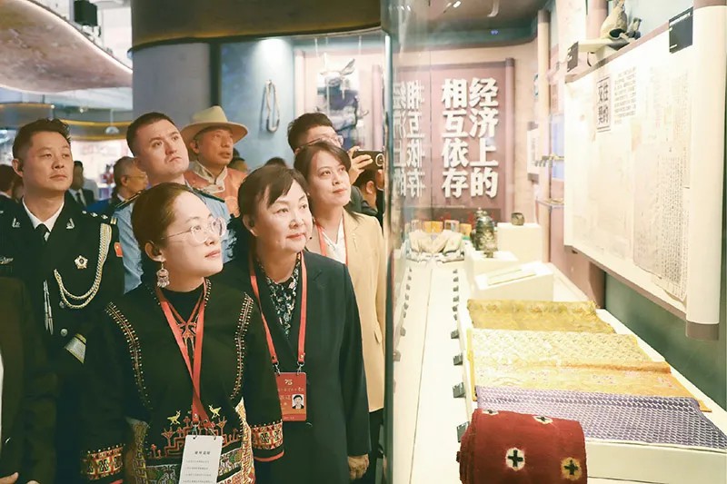 2024年9月28日至10月1日,全國少數(shù)民族參觀團(tuán)在北京參觀考察,感受新時代偉大成就。圖為參觀團(tuán)在民族文化宮參觀鑄牢中華民族共同體意識文物古籍展,了解中華民族共同體形成發(fā)展的歷史。民族畫報社供圖陳濤/攝