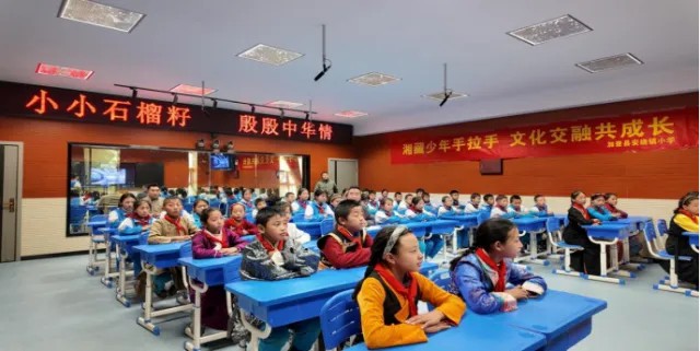 走進(jìn)山南安饒鎮(zhèn)小學(xué)的同心筑夢文化園,我國各民族的簡介牌立在道路兩旁,來自不同民族的“小小講解員”介紹中華優(yōu)秀傳統(tǒng)文化;錄播教室的“空中課堂”,學(xué)生正在和湖南常德的課堂進(jìn)行直播連線……鑄牢中華民族共同體意識的種子正在稚嫩的朗朗讀書聲中生根發(fā)芽。