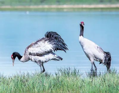 若爾蓋濕地的黑頸鶴。貢波澤里攝