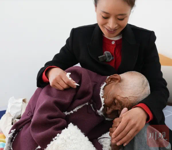 今年34歲的格西王姆,在這里已經(jīng)工作了16年,早已把養(yǎng)護院當成了自己的家,“有時候下班回家了,反而睡不好,總是想著老人們在干嘛,等第二天再走進養(yǎng)護院,我的心才能靜下來?!彼龔囊幻B(yǎng)老護理員干起,2019年敬老院公辦民營改革,她被聘為院長。去年,敬老院搬到現(xiàn)在的新址,舊貌換新顏,公益性敬老院也升級成為兼具社會養(yǎng)老功能的老年養(yǎng)護院。